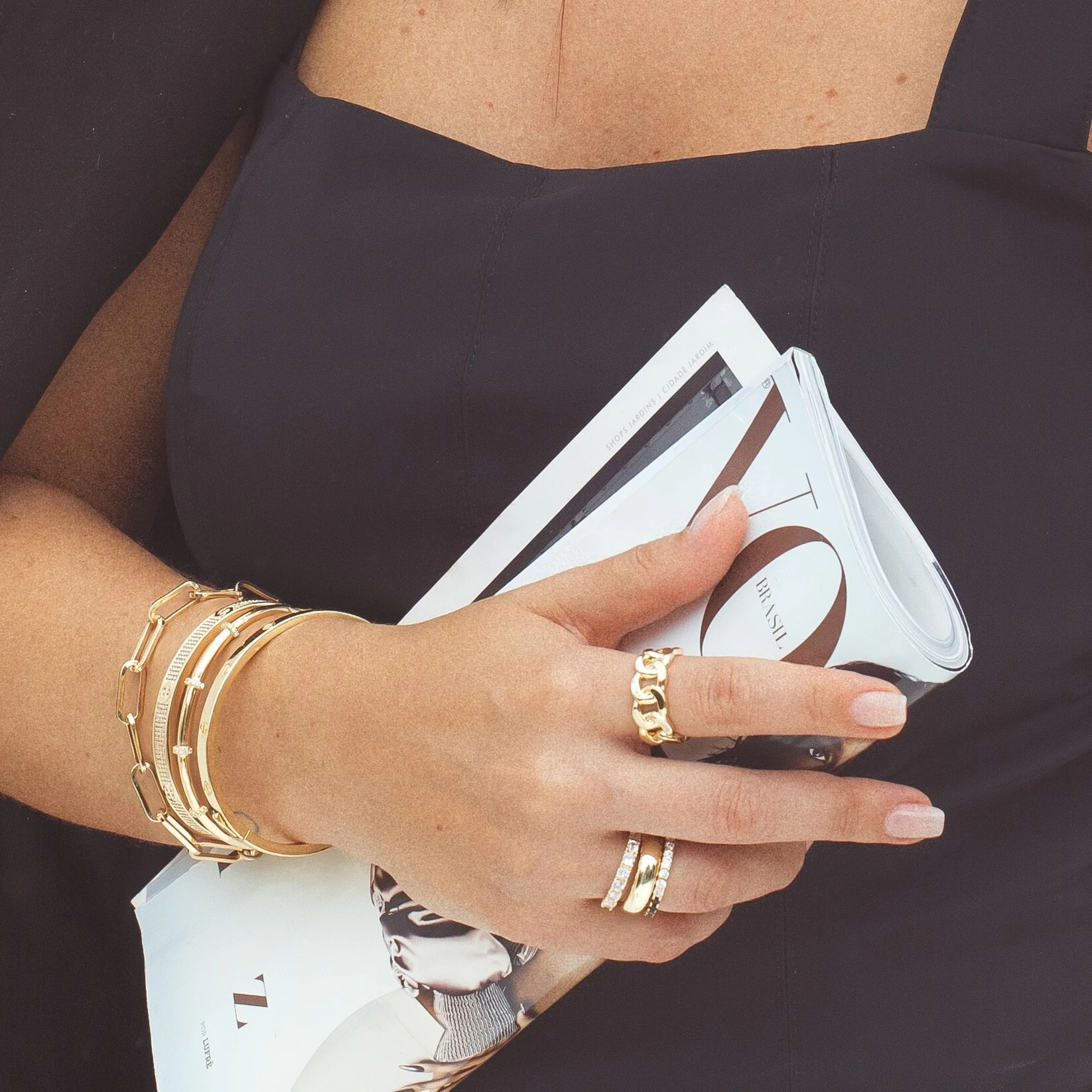Brinco ear cuff dourado com cristais, redondos rutilo