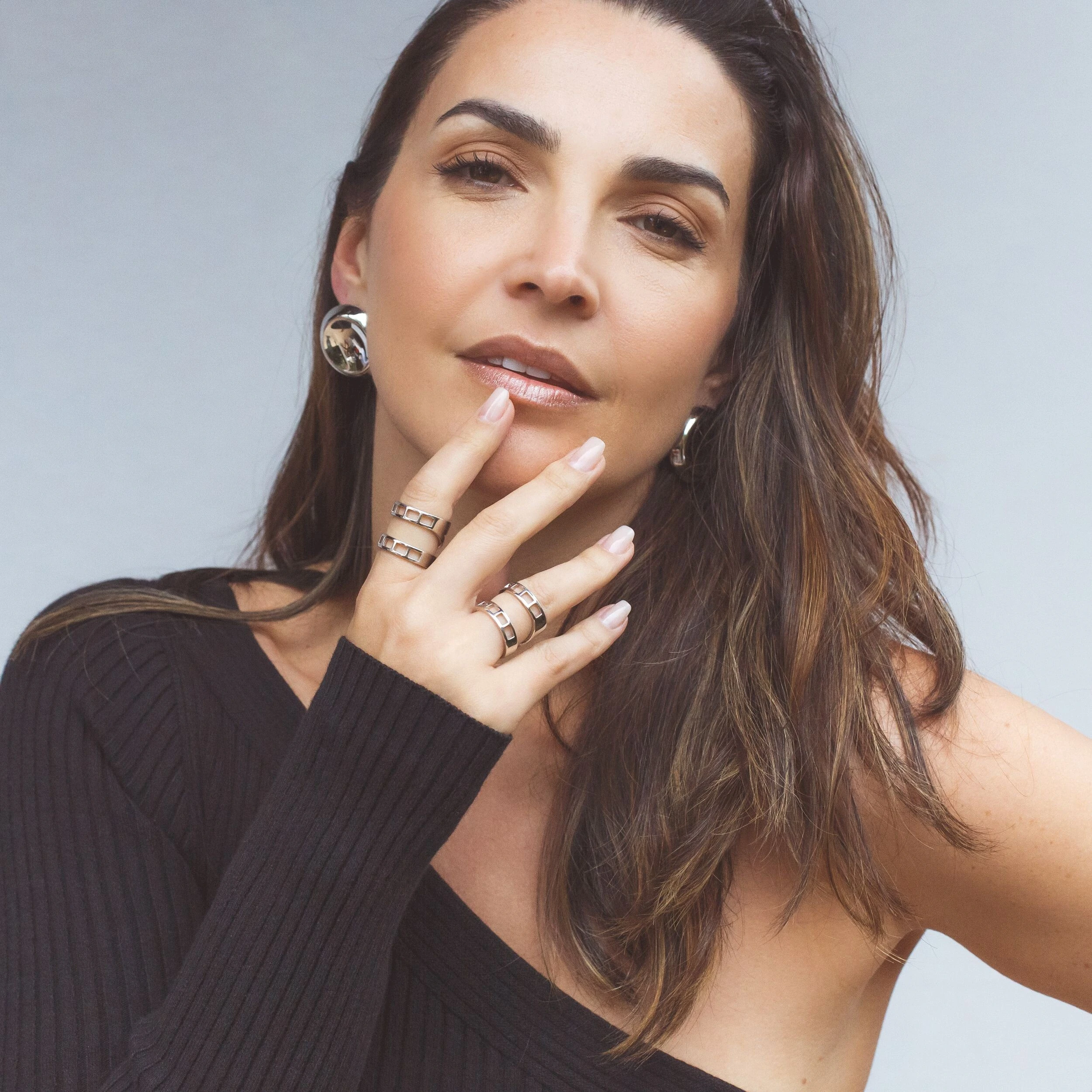 Piercing ródio branco duas fileiras lisas e duas fileiras com zircônias