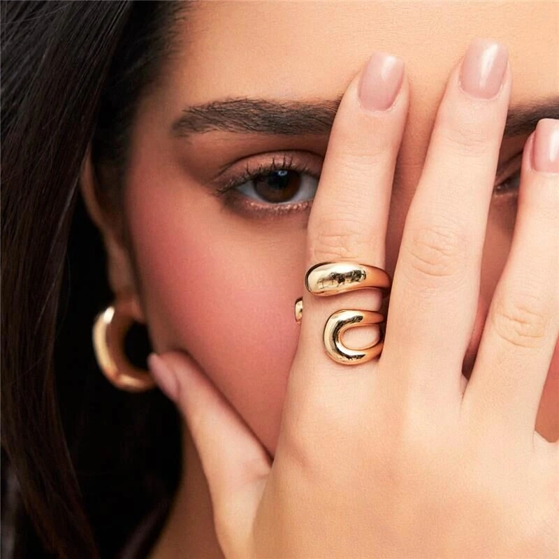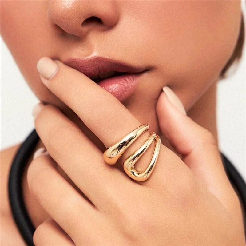 -35%Anel dourado estilo aliança lisa com triângulo cravejado inspired