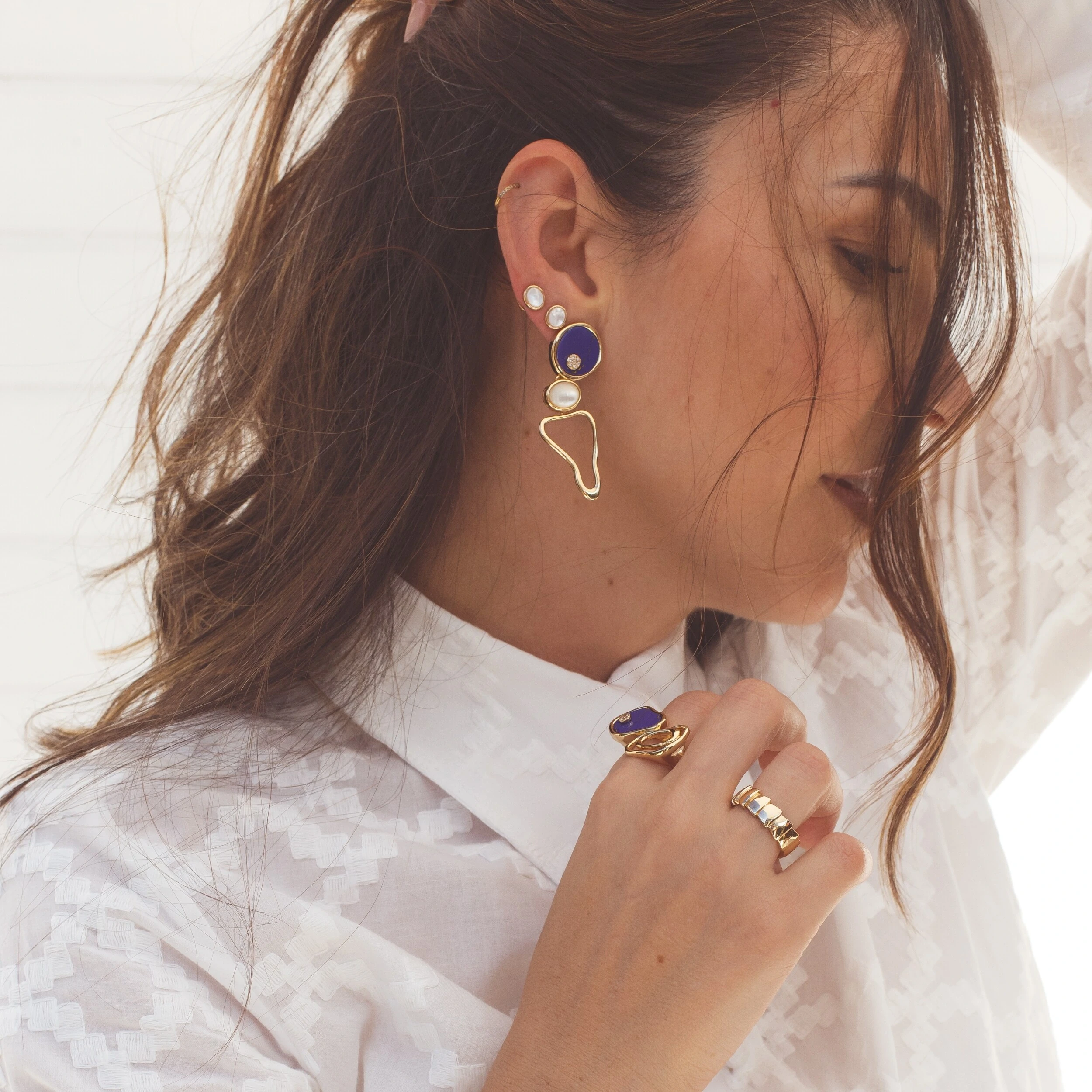 Anel regulável prata 925 com cristais em formato redondo, retangular e gota
