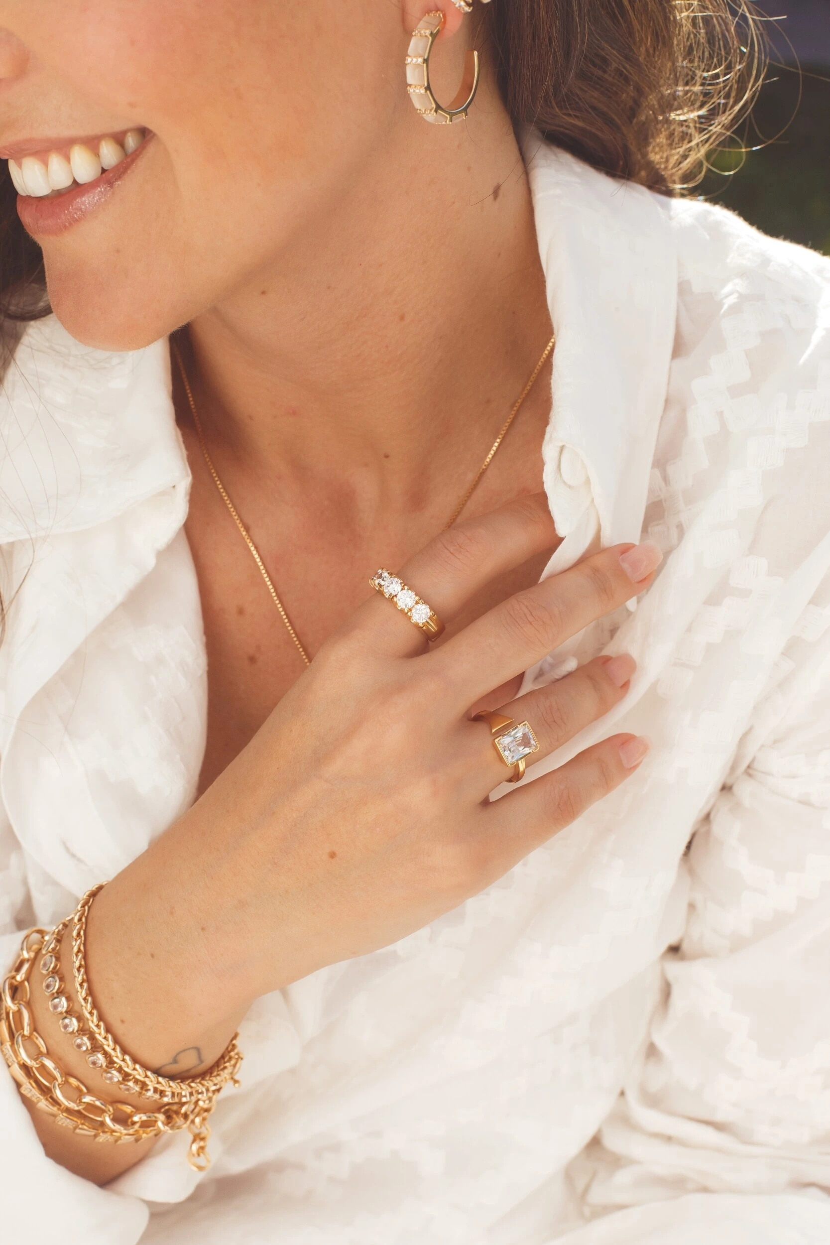 Pulseira dourada com elos lisos e retangulares estilo Cartier