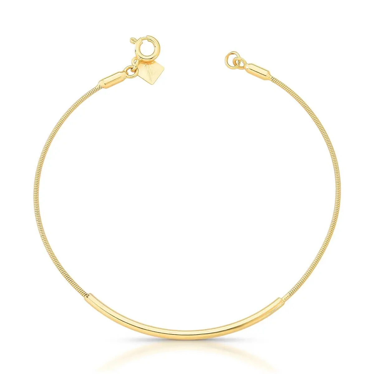Pulseira bracelete dourado fecho click e design liso abaulado e curvo