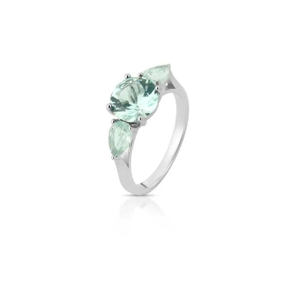 Anel em prata 925 oval central com gotas laterais cristal