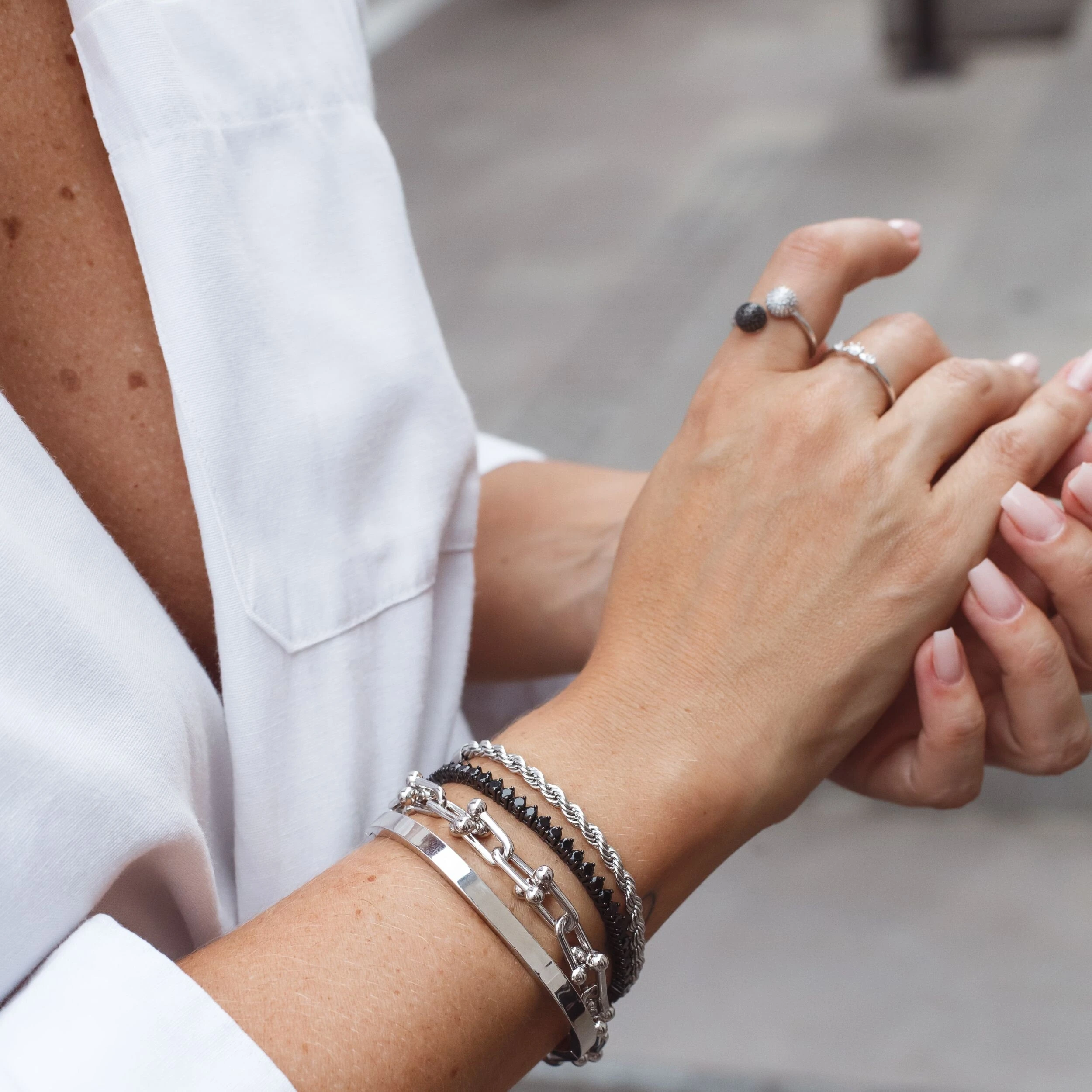 Delicado e cheio de charme, este anel de esferas em prata 925 com banho de ródio branco, é aquela peça versátil que traz um toque moderno e sofisticado para a composição. Seu design minimalista valoriza a beleza dos detalhes e permite combinações perfeitas com outros anéis, além de também ficar lindo usado sozinho. Uma semijoia atemporal, ideal para quem ama elegância com leveza no dia a dia.