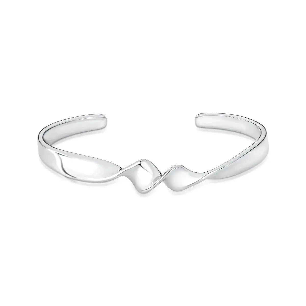 Bracelete liso com design torcido e curva suave, apresentando abertura para ajuste prático e conforto no uso. Peça elegante que valoriza qualquer look com estilo contemporâneo e versatilidade.