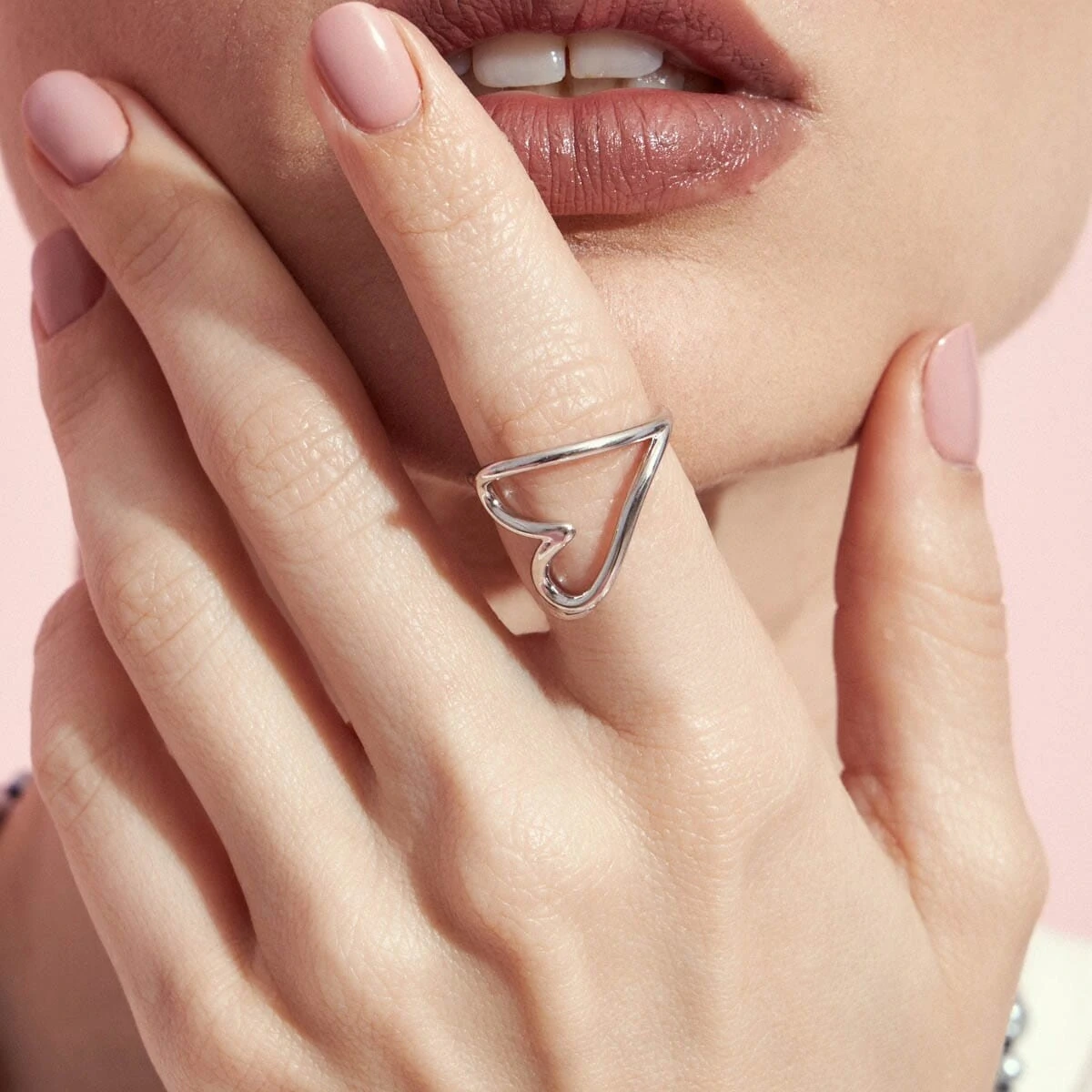 Anel de coração, vazado, liso, curvo, prata 925 com banho de ródio. Os anéis são indispensáveis quando o assunto é elegância, os modelos delicados são super versáteis e deixam qualquer look um charme, remetem elegância, delicadeza e estilo.