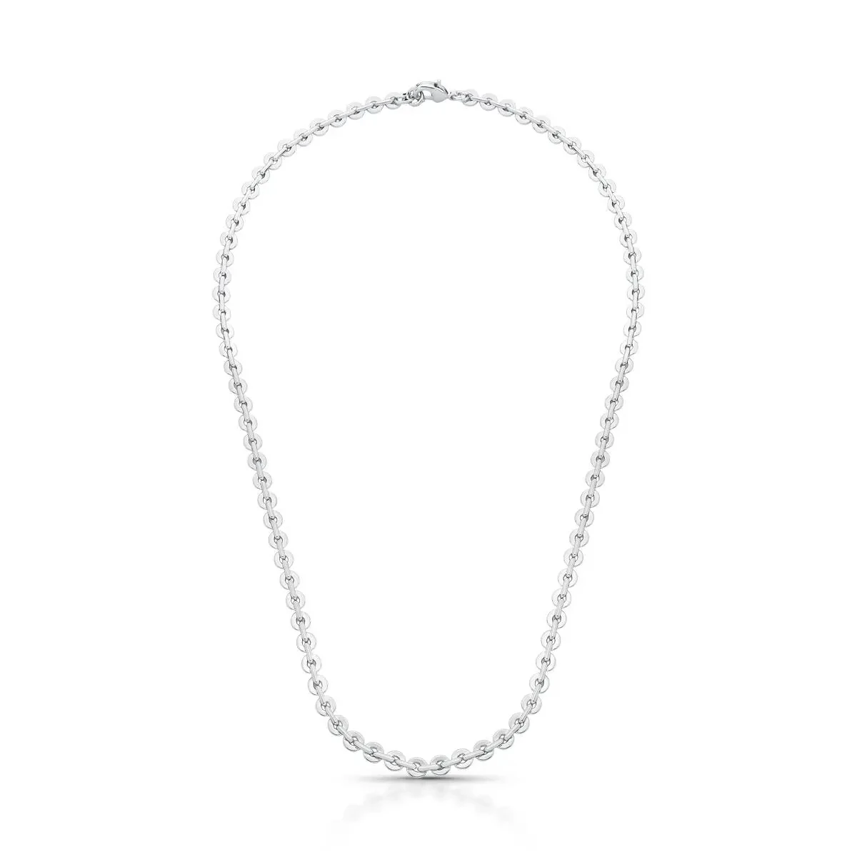 Colar liso de elos redondos intercalados. Com design clássico e atemporal, essa peça é perfeita para acrescentar um toque de elegância ao seu look. Ideal para usar sozinho ou em camadas com outros colares.