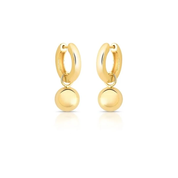 Brinco de argola com pingente esfera lisa, banhado a ouro 18k.